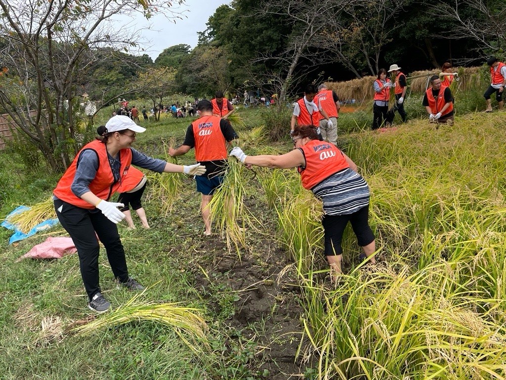 KDDIは2025年10月4日、環境保全計画「KDDI GREEN PLAN 2030」の「生物多様性保全」を推進する一環として、鎌倉広町緑地(神奈川県鎌倉市)にて、NPO法人「鎌倉広町の森市民の会」が主催する稲刈りボランティア(以下 本活動)に参加しました。
