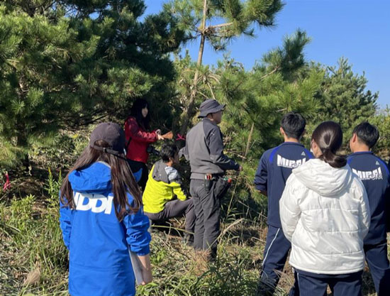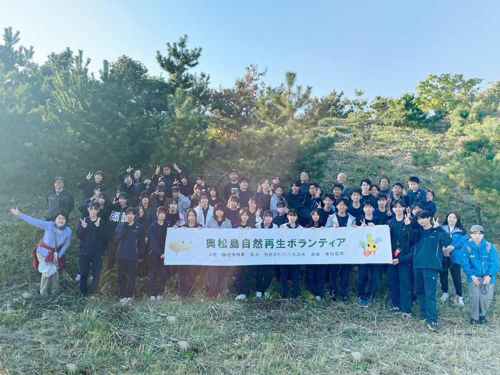 KDDI東北総支社は、2025年10月30日、宮城県東松島市の野蒜海岸近くの防潮堤(二線堤)にて、住友林業株式会社による「奥松島自然再生ボランティアプロジェクト」の一環として開催された自然観察会にICT学習支援で協力しました。本イベントでは、地域の自然再生と生物多様性保全を目的に、鳴瀬未来中学校の3年生64名とともに、植樹した苗木の成長を調査するフィールドワークを行いました。