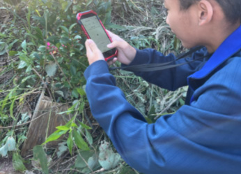<樹高の計測やナンバリングなどの説明を受ける生徒>